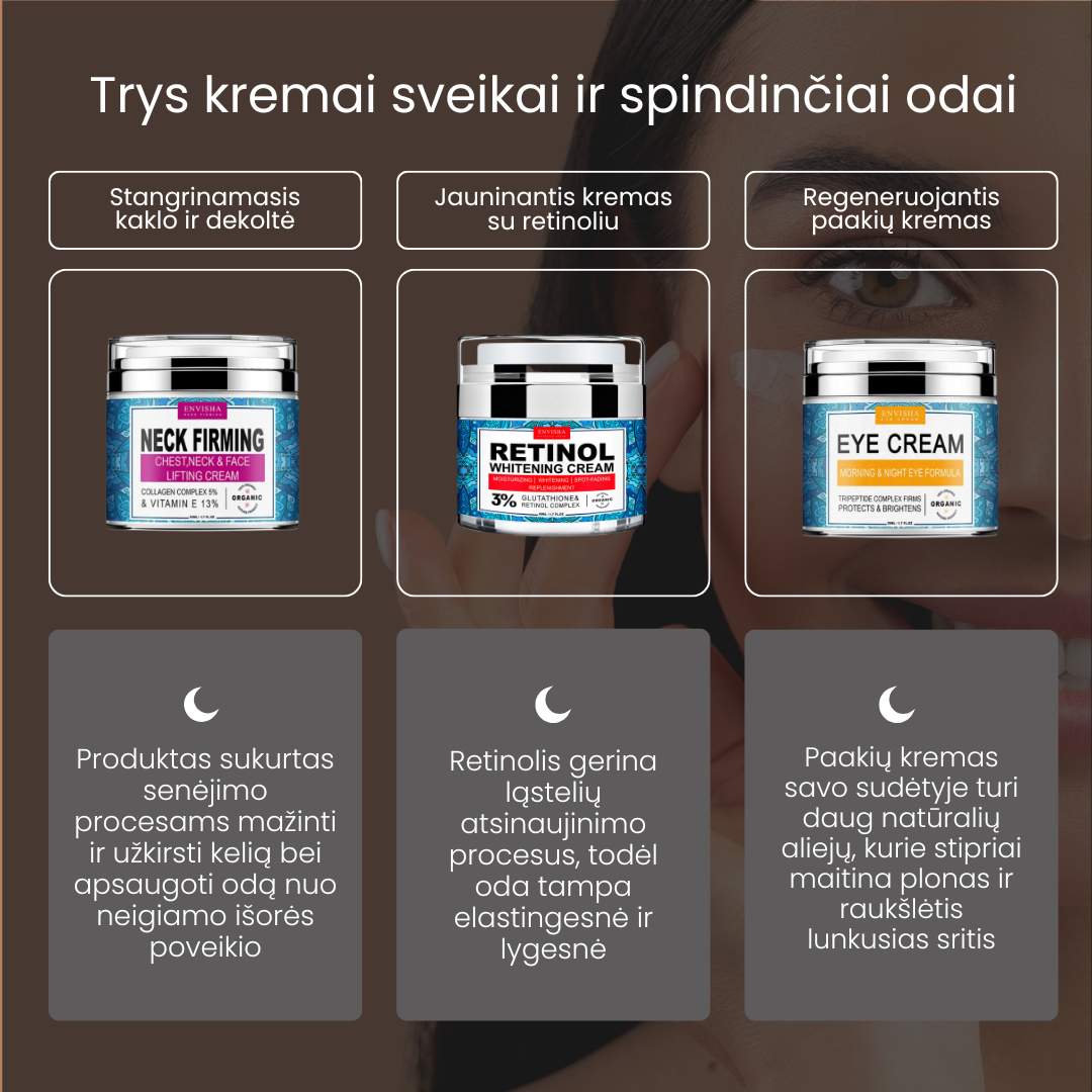 Trys kremai sveikai ir spindinčiai odai
