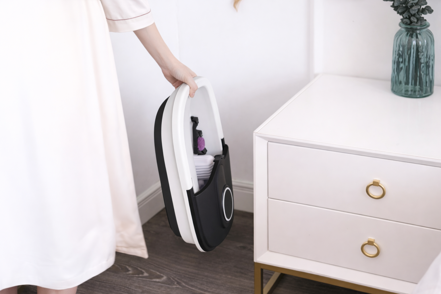 Tobulas sprendimas pėdų poilsiui ir preciziškai apgalvotos detalės. Paprastai naudojama ir sulankstoma masažo vonelė tiks tiek aktyvų, tiek ramų gyvenimo būdą mėgstantiems asmenims.
