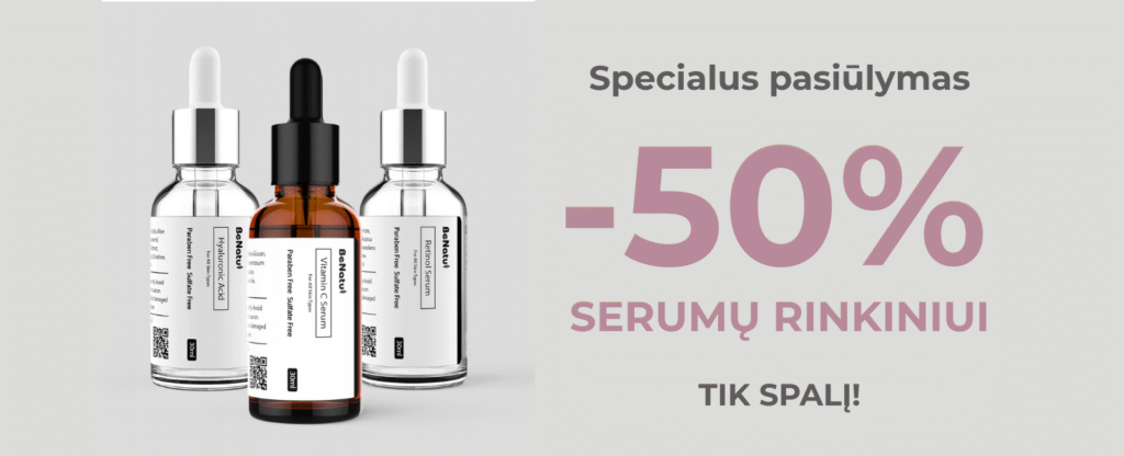 Geriausiam rezultatui pasiekti rytais tepkite hialurono serumą, o vakarais pakaitomis – retinolį arba Vitamino C serumą.