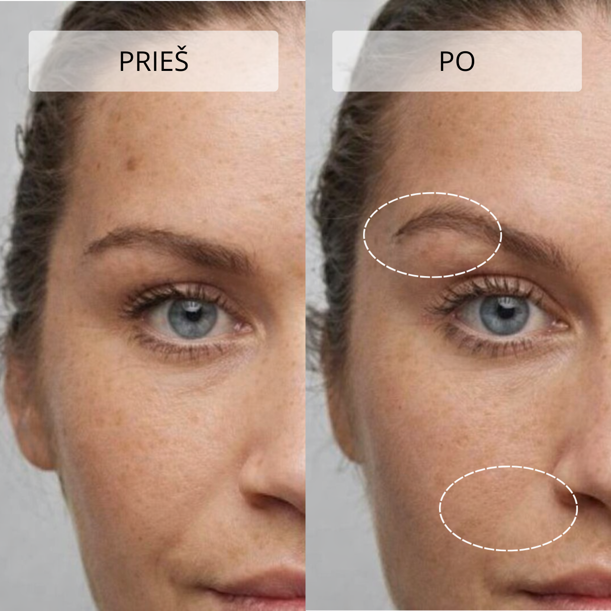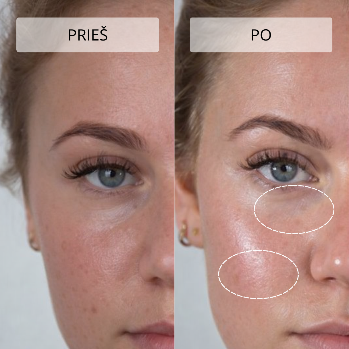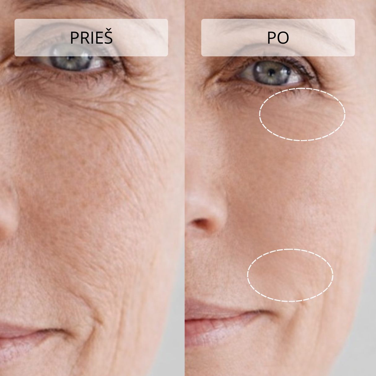 Švelnus masažas gerina limfos apytaką, todėl mažėja odos patinimas ir paburkimas. Veidas atrodo pailsėjęs, paakių oda – šviesesnė ir lygesnė.