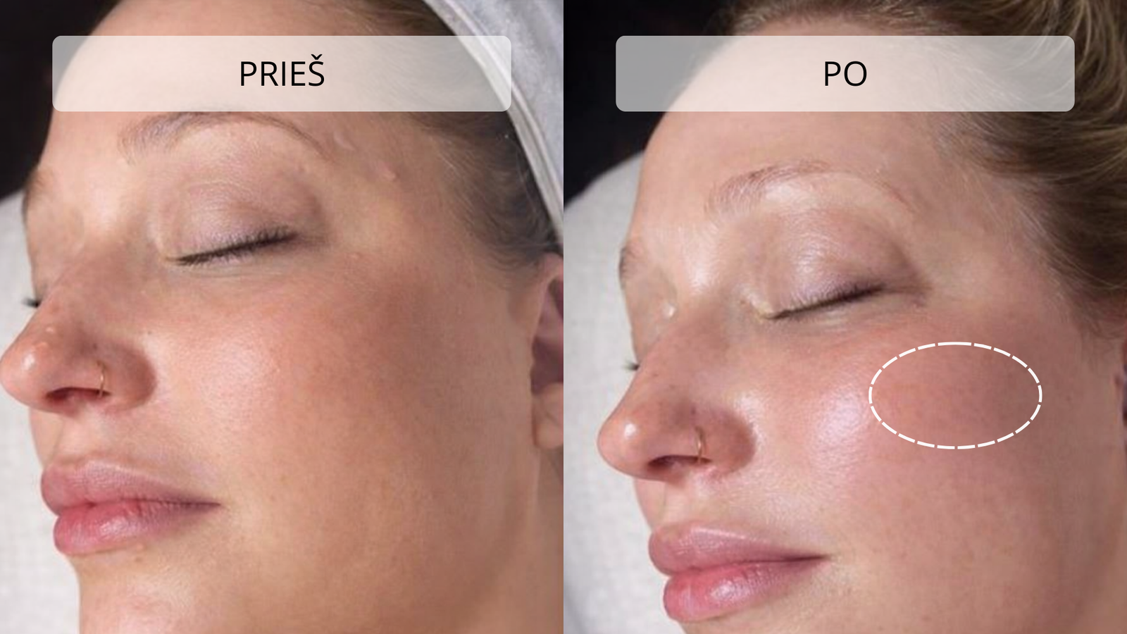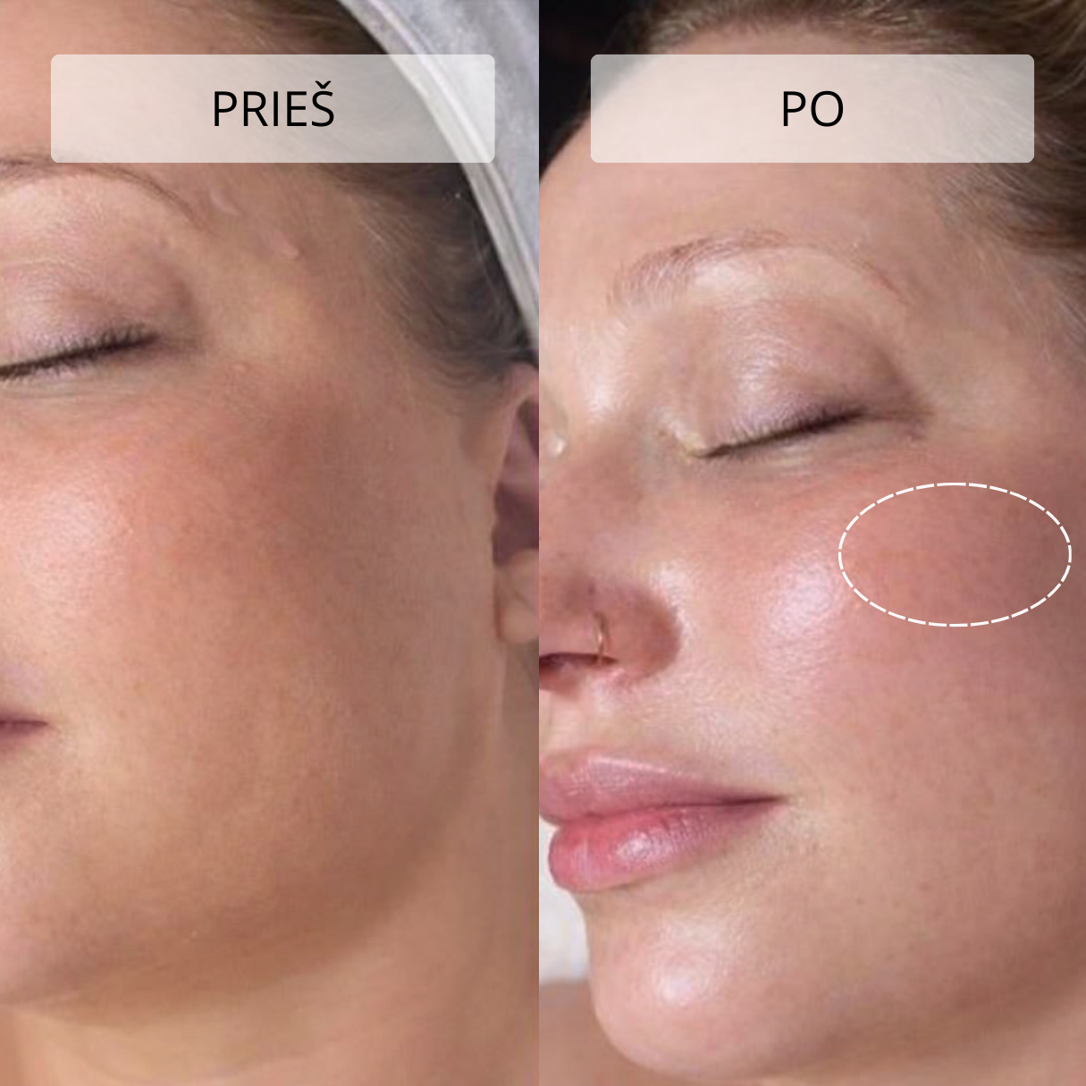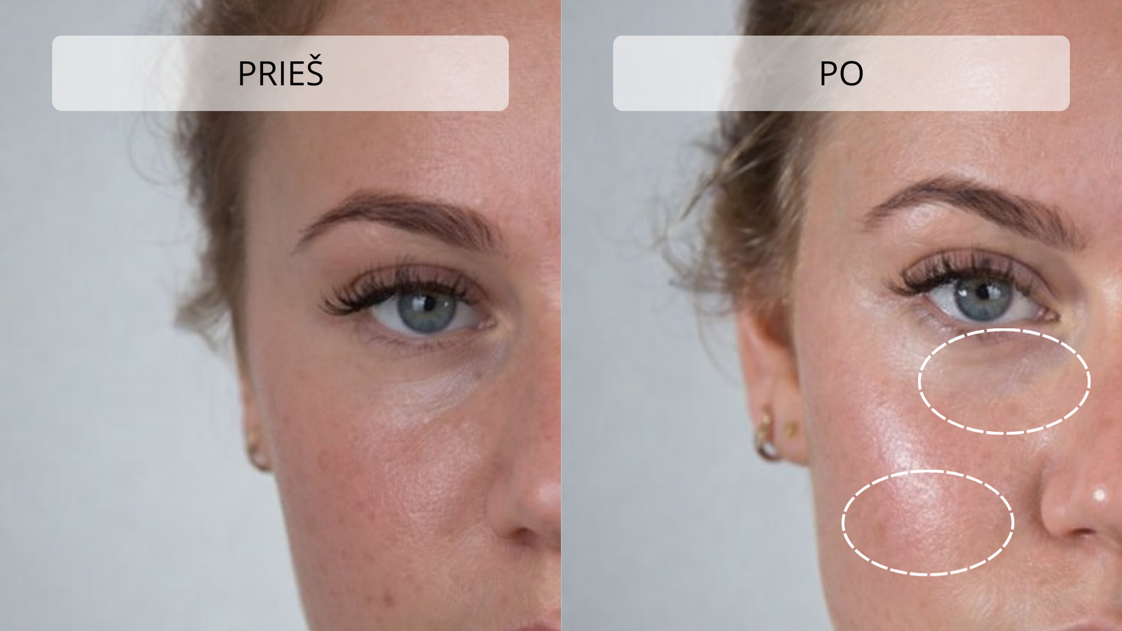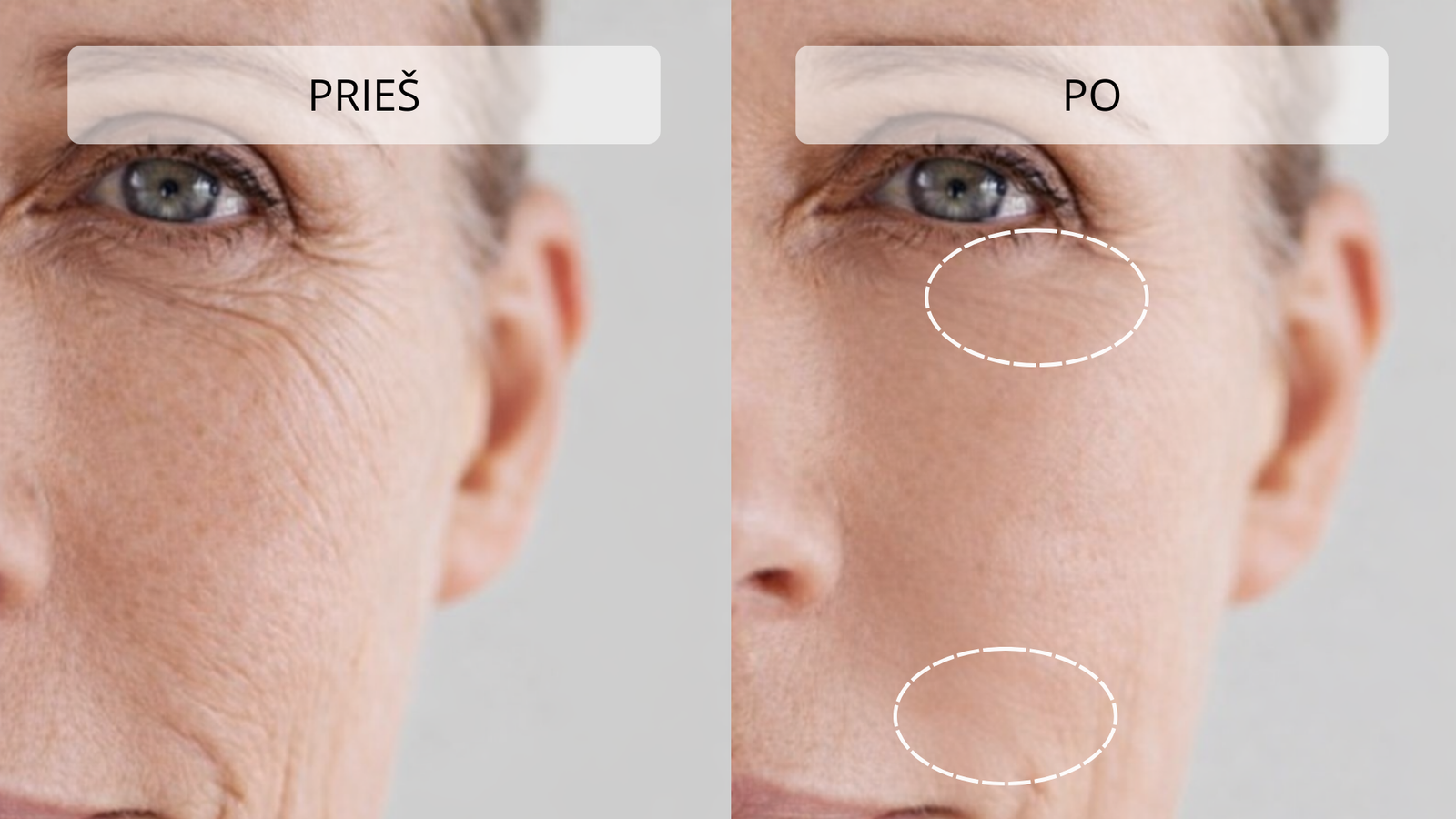 Švelnus masažas gerina limfos apytaką, todėl mažėja odos patinimas ir paburkimas. Veidas atrodo pailsėjęs, paakių oda – šviesesnė ir lygesnė.