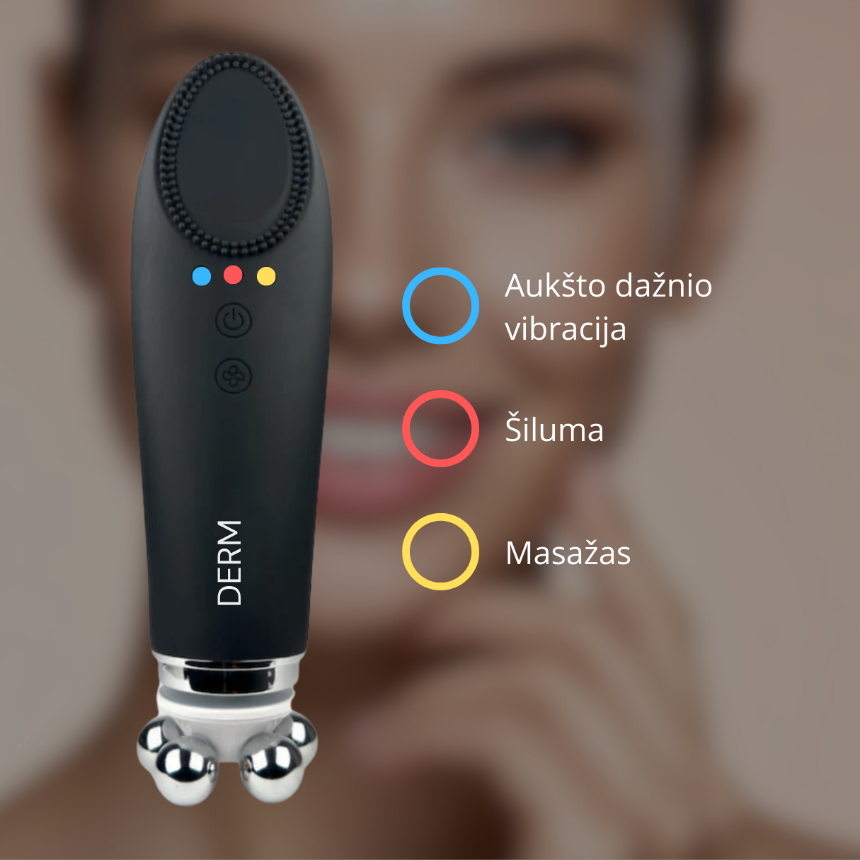 Daugiafunkcis grožio prietaisas, sukurtas kasdienei veido priežiūrai namuose. Naudojant jį veido oda ne tik valoma, bet ir masažuojama, todėl aktyvinama jos kraujotaka. Reguliariai naudojant DERM SkinTouch veido oda atrodo gaivesnė ir stangresnė. Viskas be sudėtingos odos priežiūros rutinos ir brangių veido procedūrų.