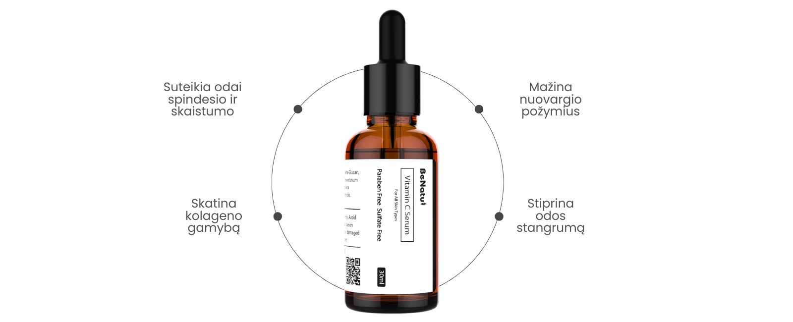 Vitaminas C -skatina koloageno gamybą ir neutralizuoja laisvuosius radikalus